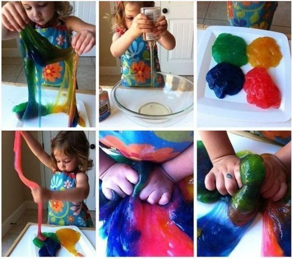 Как сделать тягучку своими руками за 10 минут Материалы: Клей ПВА. Крахмал. Красители пищевые - по желанию. Емкости. Шаг 1. Вылейте в емкость клей ПВА. Шаг 2. Добавьте такое же количество крахмала. Шаг 3. Хорошо вымешайте смесь, добавьте краситель и снова вымешайте. Теперь можно приступать к... Далее