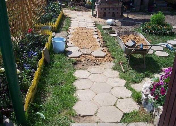 Для укладки плитки ВЫКОПАТЬ 20 см траншею, засыпать её песком, так плитка ровнее ложится.
